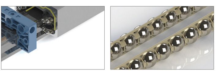 NTN-SNR——所有系列的線性軸都配備了采用球鏈技術的線性導軌。通過以45°角布置電纜管道,NTN-SNR-線性導軌可以普遍使用,并且在所有主要負載方向上具有相同的額定負載。在NTN-SNR的特殊功能中,帶滾珠鏈的線性導軌具有集成的潤滑油箱。使用這些線性導軌有以下優點:
