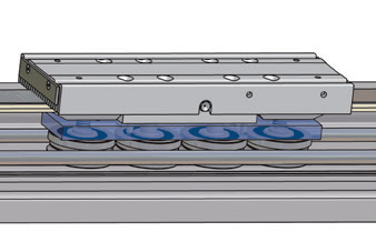 聚合物履帶支重輪通過滑動軸承與滑塊單元連接。帶該導向系統的線性軸甚至可以在潮濕區域、嚴重污染區域或與腐蝕性介質接觸的區域使用。