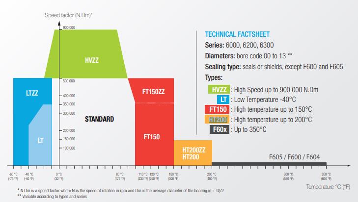 Topline系列耐高溫軸承的后綴有多種,分別為FT150(高溫150度);HT200(高溫200度);F600、F604、F605(高溫350度),在選用時需要注意區(qū)分。