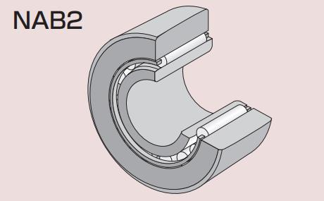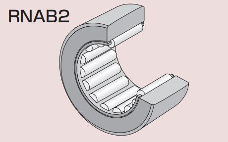一、RNAB2型。如上圖所示,這類軸承無內(nèi)圈,并有球面外圈,可以有效地承受由安裝誤差引起的邊緣載荷,其典型的型號如RNAB202,其中RNAB是類型代號,緊隨之后的2是尺寸系列,02是內(nèi)徑尺寸。