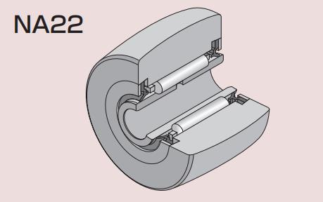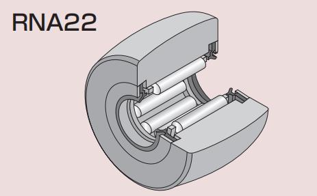 三、RNA22型。如上圖所示,這類軸承無內(nèi)圈,并有球面外圈,其密封件為鋼板增強(qiáng)合成橡膠材質(zhì),并固定在外圈上,其型號如RNA22/6LL/3AS,其中/6代表內(nèi)徑為6mm,LL為雙面密封,/3AS為潤滑脂,代表殼牌/阿爾瓦尼亞S3潤滑脂。
