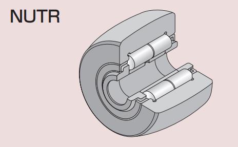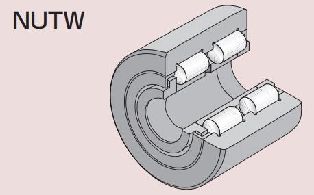 八、NUTR型,如上圖所示,這類軸承是滿裝滾子的,因此具有高負(fù)荷額定值,最適合承受高負(fù)荷和沖擊負(fù)荷的應(yīng)用,鋼板壓入外圈,與內(nèi)圈兩側(cè)的側(cè)板形成迷宮,側(cè)板固定在一起,以免彼此分離并形成良好的密封。外圈由外圈肋和圓柱滾子端面沿軸向引導(dǎo),內(nèi)圈和側(cè)板沿軸向擰緊在一起,以防止軸向移動,其型號如NUTR310/3AS。