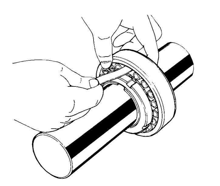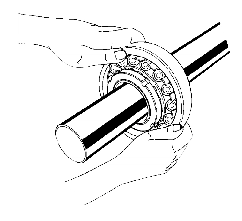 (9) 當(dāng)大型軸承安裝到軸上時(shí),其外圈將因自身重量而變形為橢圓形,變形軸承最低點(diǎn)的間隙測(cè)量值將大于真實(shí)間隙,因此,請(qǐng)切記,此時(shí)測(cè)量徑向間隙值將導(dǎo)致擰緊量過大。