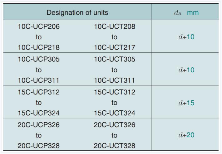 如上圖所示,如果有明顯較大的軸向載荷,這種情況下應(yīng)使用階梯軸,對(duì)于帶蓋的軸承座安裝單元,建議將下表中所示的裝置與相應(yīng)直徑的軸一起使用,如果使用的階梯軸直徑小,則建議在階梯肩和內(nèi)圈表面之間使用墊片。