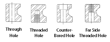 出于組裝和維護(hù)的原因,SKF回轉(zhuǎn)支承軸承設(shè)計(jì)了安裝孔,這些孔是螺紋孔,還有特殊的螺栓樣式,連接回轉(zhuǎn)支承軸承兩個(gè)套圈的理想孔模式是一整圈均勻間隔的通孔,SKF回轉(zhuǎn)支承軸承各種孔的設(shè)計(jì)如下圖所示。