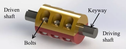 與由單個零件制成的套筒聯(lián)軸器不同,對開式聯(lián)軸器由不同的零件設(shè)計,如上圖所示,其套筒是半圓柱形的,以便于安裝在兩個軸上。對開式聯(lián)軸器由兩排螺栓固定,可以在不改變軸位置的情況下輕松組裝或拆卸,這類聯(lián)軸器非常適合中等轉(zhuǎn)速,中等及重型負(fù)載。