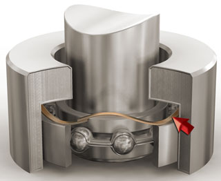 軸承預緊波形彈簧消除了游隙并將軸承噪音降至最低,它們施加的恒定輕至中等壓力消除了滾珠軸承與軸承內圈和外圈之間的間隙,預緊可以減少因振動(振動載荷)造成軸承損壞的可能性,以及因重復和非重復跳動造成的磨損。