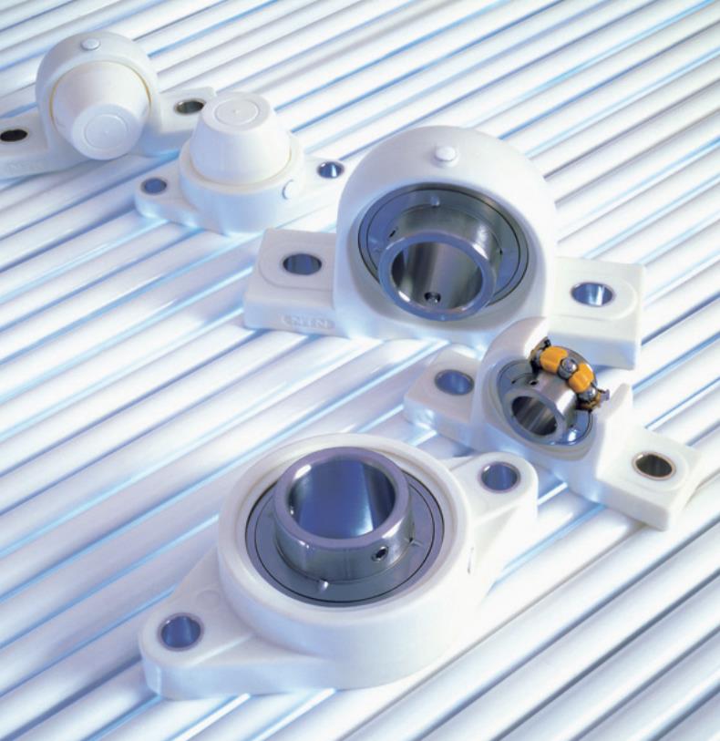 NTN獨家開發的滾珠軸承中的固體潤滑脂可減少潤滑劑泄漏,顯著減少環境污染,此外,塑料外殼不會被污染,也不會有油漆脫落等污染環境問題的發生,含固體潤滑脂的塑料外殼軸承安裝單元適用于需要清潔操作環境的應用,如:食品加工和包裝機械、藥品加工機械等。