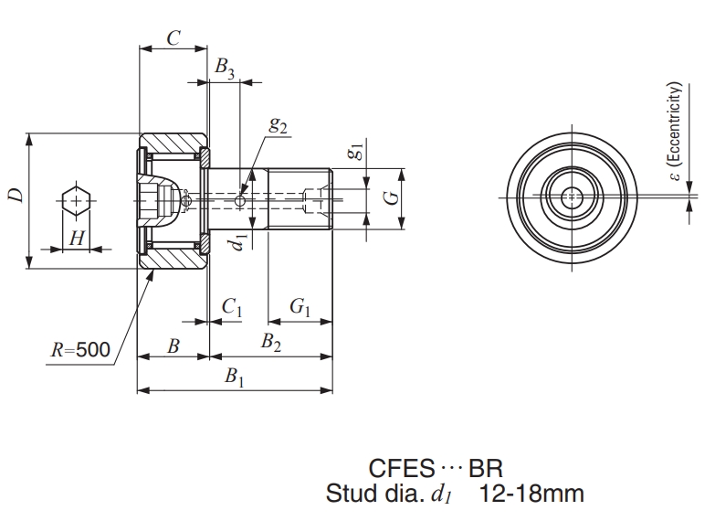 IKO CFES8BUUR軸承尺寸、參數(shù)與圖紙