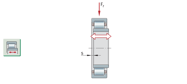 圓柱滾子軸承NU,非定位軸承,軸承內(nèi)位移補(bǔ)償 s=軸向位移距離 | ![]() |