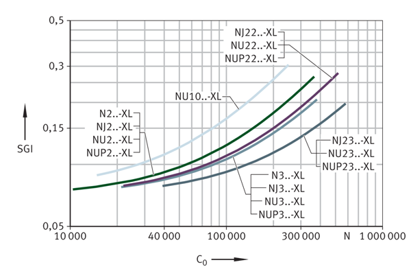 為了使接觸元件之間不發生滑動,圓柱滾子軸承必須持續承受足夠高的徑向載荷。經驗表明,對于連續運行,需要P>C0r/60級的最小徑向載荷。然而,在大多數情況下,由于支撐部件的重量和外力,徑向載荷高于所需的最小載荷。