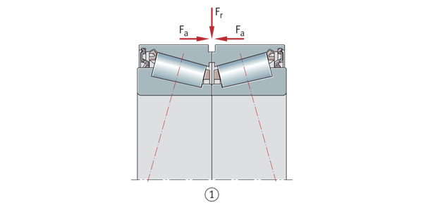 單列圓錐滾子軸承可以承受一個方向的軸向載荷和高徑向載荷。然而,它們必須始終相對于安裝在鏡像排列中的第二個軸承進行軸向調(diào)整。然后將該軸承組合裝配成O形或X形布置。