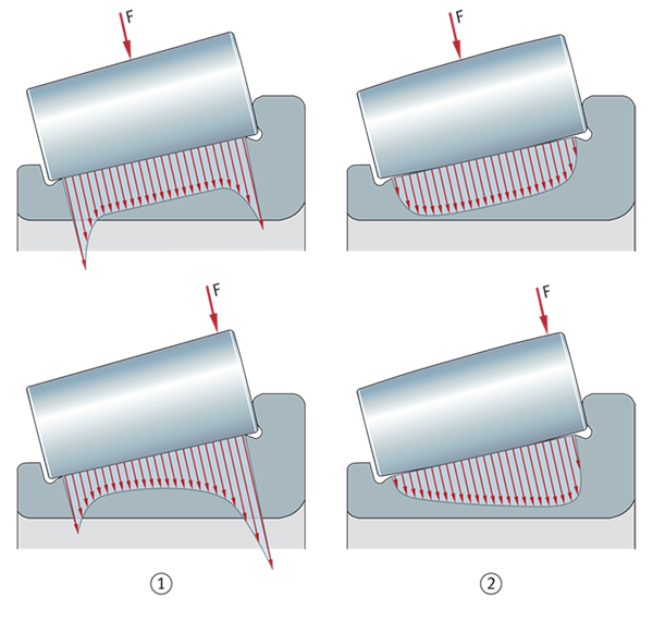 圓錐滾子和滾道之間的改進的線接觸確保了接觸點處的最佳應力分布,并防止了邊緣處的應力增加。因此,軸承可以承受一定的角度錯位,并更好地支撐力矩載荷。
