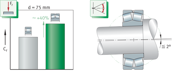 旋轉不平衡會產生旋轉軸偏轉和軸承內的額外滑動。摩擦因此增加,更進一步增加了軸承的工作溫度。特殊的調心滾子軸承可以支持高達0,15°的動態角度調整。