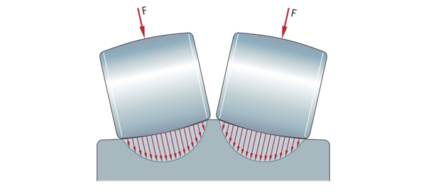 滾子和滾道之間的接觸點處的應力分布由滾子的接觸表面決定。因此,滾子的幾何形狀與滾道相匹配。這在滾子的整個長度上提供了有利的載荷分布,并防止了邊緣應力和滾子端部的應力峰值。