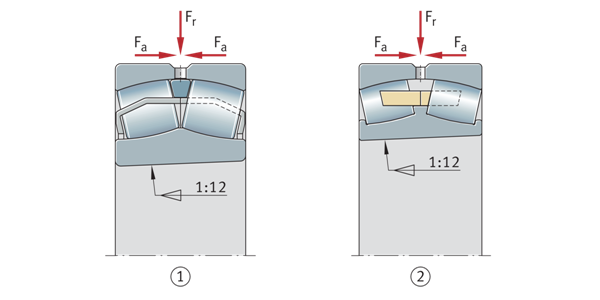 ①帶錐形孔的調心滾子軸承直接安裝在錐形軸頸上