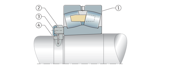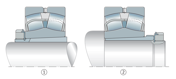 完整的軸承安裝套件也可用于將帶錐形孔的調心滾子軸承定位到圓柱形軸頸上。這些裝置包括軸承、緊定套、止動墊圈和鎖緊螺母,或軸承和退卸套,緊定套和退卸套允許軸承定位于光滑的階梯軸上。