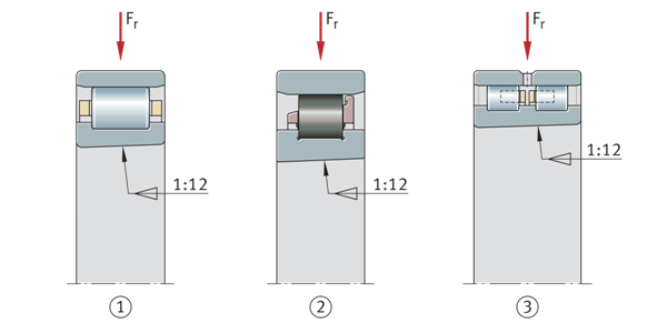 超精密圓柱滾子軸承 Fr=徑向載荷 ①單列,錐形孔,N10 ②單列,錐形孔,陶瓷滾動元件:HCN10 ③雙列,錐形孔,NN30,NNU49 | ![]() |