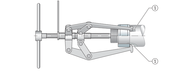 如果內(nèi)圈與軸肩接觸,且沒有提取槽,則可以借助帶夾緊工具的拆卸器拆卸滾珠軸承、圓錐滾子軸承和圓柱滾子軸承。在滾珠軸承拆卸器的情況下,插入拆卸器中的夾緊工具的指狀延伸部接合在內(nèi)圈滾道邊緣上的滾珠之間