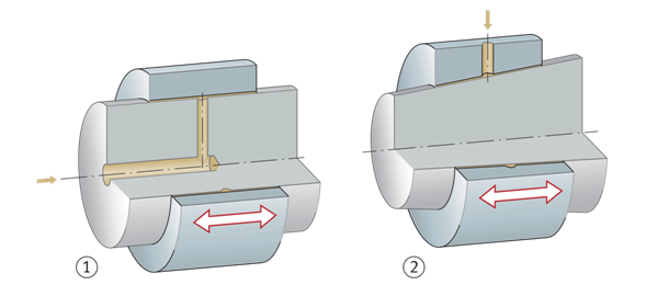 為了壓入機油,必須為壓力產(chǎn)生裝置提供油槽和供油管以及螺紋接頭,緊定套和退卸套中設(shè)計有這些管道