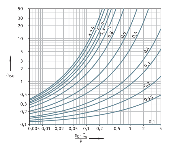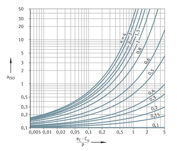 出于實際目的,壽命調整系數應限制在aISO≤50。如果eC·Cu/P>5,該限值也適用。對于粘度比κ>4,應使用值κ=4;如果κ<0,1,則計算無效。