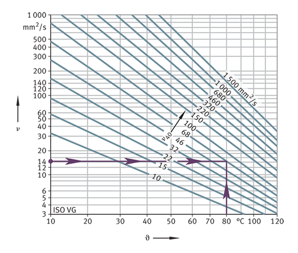 在+40°C時,油的標稱粘度由所需的工作粘度ν和工作溫度?確定,如果是潤滑脂,則為基礎油的工作粘度。