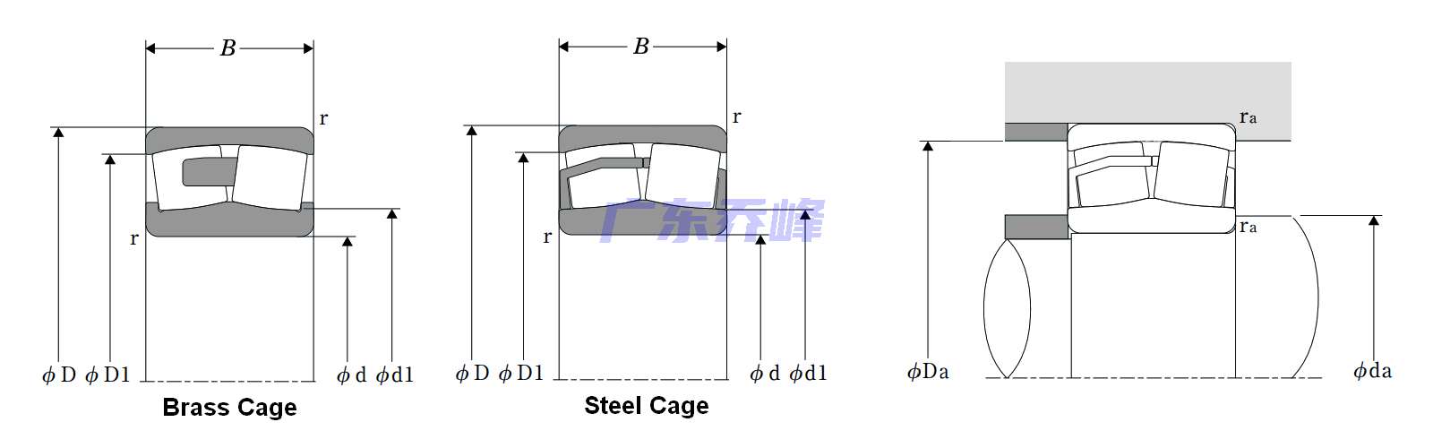 | 調心滾子軸承 - 圓柱孔,222系列 - 尺寸 | |