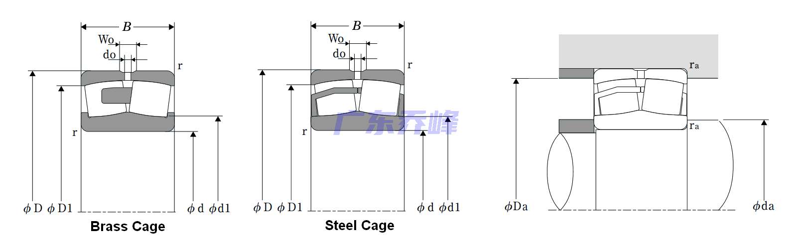 軸承型號:23230EMW33C3,調心滾子軸承 - 圓柱孔&注油槽,232系列,其基礎型號為23230,后綴列表:【EM:EM型,一體式機加工黃銅保持架,抗沖擊性好,剛度大】【D1:外圈潤滑油槽油孔】【C3:C3游隙】