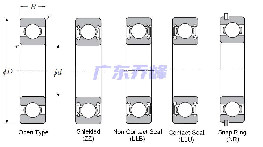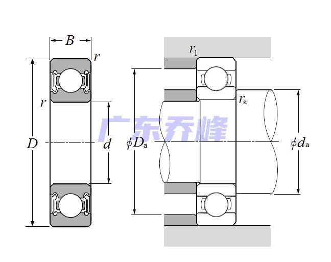 單列深溝球軸承 - 雙面密封(非接觸式橡膠密封) - 尺寸