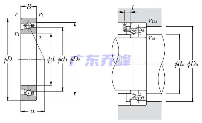| 環保型角接觸球軸承 - HSFL型 - 尺寸 | |