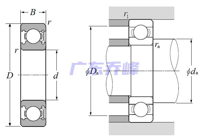 單列深溝球軸承 - 單面密封(接觸式橡膠密封) - 尺寸