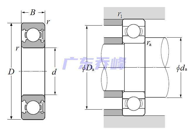 | 單列深溝球軸承 - 單面密封(輕接觸橡膠密封) - 尺寸 | |