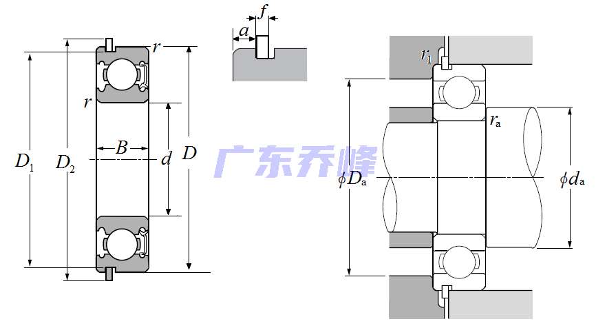 單列深溝球軸承 - 單面密封(接觸式橡膠密封)帶止動環 - 尺寸