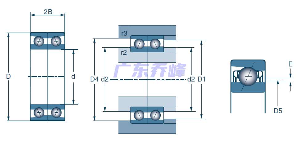 | 雙聯(lián)角接觸球軸承,高精度 - 萬能平頂軸承 - 尺寸 | |