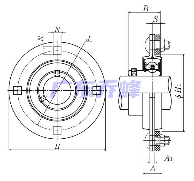 | JELPF208-109 | 詳細尺寸,d:39.688mm,c:6.800mm,b:21.000mm,j:119.000mm,r:148.000mm |