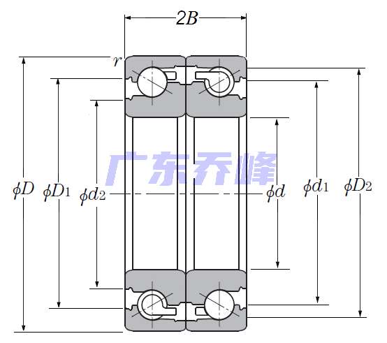 | 滾珠絲杠用雙角接觸推力球軸承 - 面對面配對,開式,一排承受軸向載荷 - 尺寸 | |