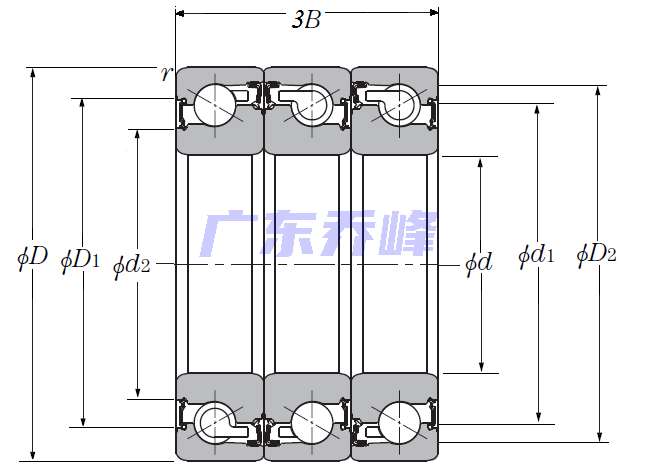 | 滾珠絲杠用三列推力角接觸球軸承 - DFT配對(duì),雙面密封,兩排承受軸向載荷 - 尺寸 | |