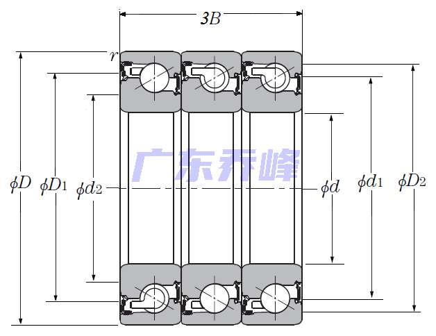 滾珠絲杠用三列推力角接觸球軸承 - DTT配對,雙面密封,三排承受軸向載荷 - 尺寸
