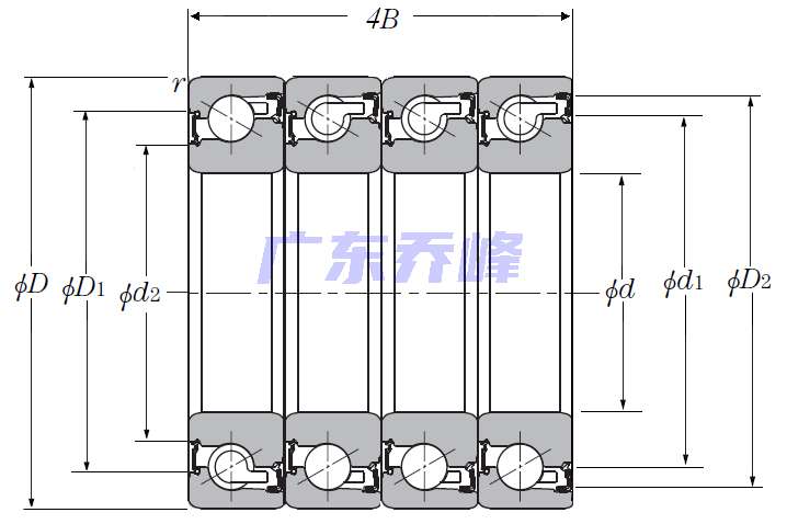 | 滾珠絲杠用四列角接觸推力球軸承 - DTTT配對,雙面密封,四排承受軸向載荷 - 尺寸 | |
