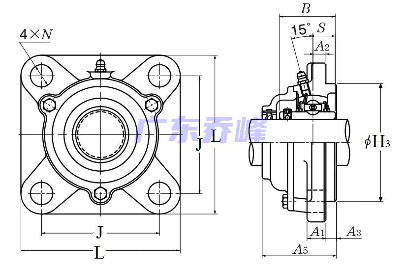 | 類型 | 四螺栓方形法蘭式軸承座 |