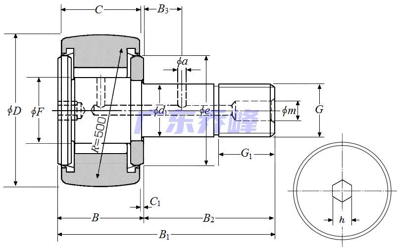 軸承型號:CRV44LLH,凸輪從動螺柱式滾輪軸承 - 球面外圈,CRV..LLH型