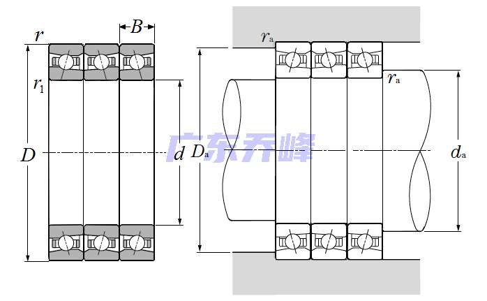 超高速多列角接觸球軸承,背對背配對 - 尺寸