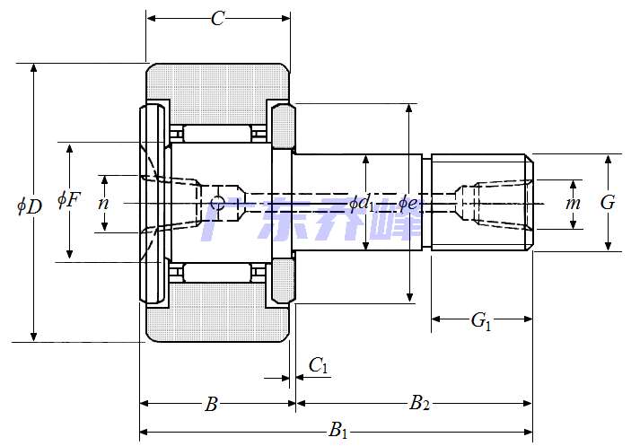 | 凸輪從動螺柱式滾輪軸承 - 圓柱內(nèi)徑,KRT型 - 尺寸 | |