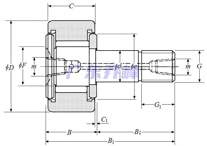 軸承型號:KRVT19XLL,凸輪從動螺柱式滾輪軸承 - 圓柱內徑,KRVT..LL型