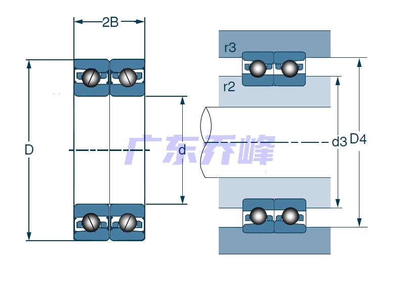 | 密封雙聯(lián)角接觸球軸承,高精度 - 尺寸 | |