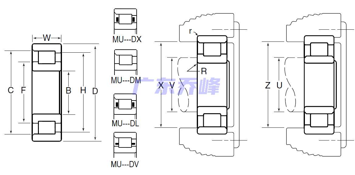 M:NTN BOWER產(chǎn)品,標準公制尺寸系列,U:內圈雙擋邊