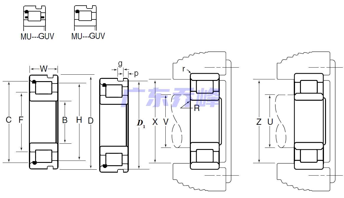 MU:M:NTN BOWER產(chǎn)品,標(biāo)準(zhǔn)公制尺寸系列,U:內(nèi)圈雙擋邊