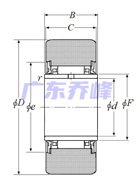 | 擋圈型滾輪軸承 - 帶內圈,雙面密封,NA22型,圓柱內徑 - 尺寸 | |
