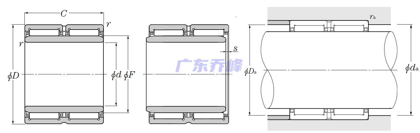雙列機加工滾針軸承,w/內圈 - NA69.R系列 - 尺寸