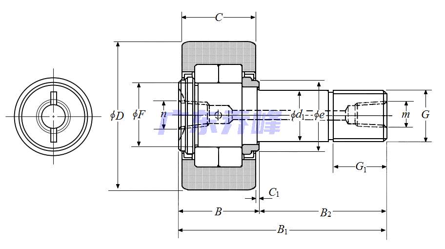 凸輪從動螺柱式滾輪軸承 - 圓柱內(nèi)徑,NUKRT型 - 尺寸
